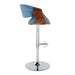 Curvo - Mid-Century Modern Adjustable Barstool With Swivel With Rounded T Footrest (Set of 2) - Chrome / Walnut / Blue