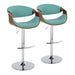 Curvo - Mid-Century Modern Adjustable Barstool With Swivel With Rounded T Footrest (Set of 2) - Chrome / Walnut / Teal