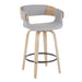 • Quality Materials: Constructed with white washed wood swivel legs and a durable chrome footrest, this stool combines functionality with style. The cushioned seat is upholstered in stylish woven fabric for added comfort.
