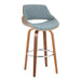 Fabrizzi - Mid-Century Modern Fixed Height Barstool With Swivel With Round Footrest (Set of 2) - Walnut / Blue