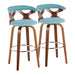 Gardenia - Mid-Century Modern Fixed Height Barstool With Swivel With Round Footrest (Set of 2) - Walnut / Teal