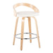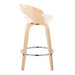 - Elegant Design: The Grotto Counter Stool by LumiSource features a curved low back and rounded legs, showcasing a sophisticated yet modern aesthetic. The combination of wood legs and a chrome metal footrest adds a touch of elegance to any dining area.