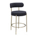 Modern Sherpa Counter Height Stools (Set of 2), Uphsoltered 26" Seat Height Barstools With Brushed Brass Metal Legs Round Low Back Kitchen Stools With Footrest For Dining Room - Black