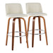 Toriano - Mid-Century Modern Fixed Height Barstool Swivel With Round Footrest (Set of 2) - Walnut / Cream