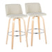 Toriano - Contemporary Fixed Height Barstool Swivel With Round Footrest (Set of 2) - Natural / Cream