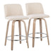 Toriano - Contemporary Fixed Height Counter Stool With Swivel And Round Footrest (Set of 2) - Whitewashed / Cream
