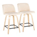 Toriano - Contemporary Fixed Height Counter Stool With Swivel With Square Footrest (Set of 2) - Natural / Cream