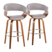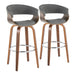 Vintage Mod - Mid-Century Modern Fixed Height Barstool With Swivel With Round Footrest (Set of 2) - Walnut / Light Gray
