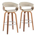 Vintage Mod - Mid-Century Modern Fixed Height Barstool With Swivel With Round Footrest (Set of 2) - Walnut / Cream