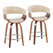 Vintage Mod - Mid-Century Modern Fixed Height Counter Stool With Swivel With Round Footrest (Set of 2) - Walnut / Cream