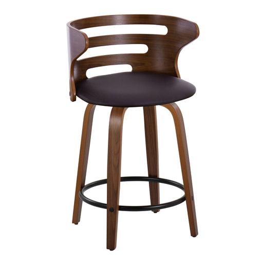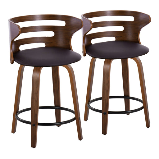 View full detailsCosini - Mid-Century Modern Fixed Height Counter Stool With Swivel With Round Footrest (Set of 2) - Walnut / Brown