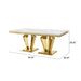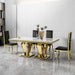 79.53 In. Elegant Marble Pattern Dining Table For 6 Or 8 Seats Polished Stainless Steel Base - Gold