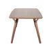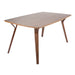 • Design & Style: The Folia Dining Table features a Mid-Century Modern design with a rectangular top, rounded edges, and splayed tapered legs, offering a clean and contemporary aesthetic.
