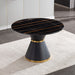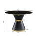 Marble Printed Round Dining Table - Black Columnar Base With Gold Annulus Not Including Chairs - Black