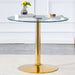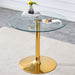 Modern Minimalist Round Dining Table With Glass Top And Metal Legs 35" Diameter - Gold / Transparent