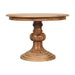 - Round Turned Dining Table - Create an elegant dining experience with this Round Turned Dining Table. Drawing inspiration from a classic French design it combines graceful curves with warm wood tones. Crafted from solid mango wood with an oak-ish finish this round table is the perfect piece for any dining room or kitchen. Every piece of furniture is individually handcrafted and includes swing care tickets explaining the cautions and aftercare instructions.