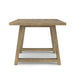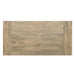 - The thick, rectangular tabletop is made with sustainably sourced solid mango wood in a Grey Wash finish and perpendicular panels on the short sides for visual contrast.
