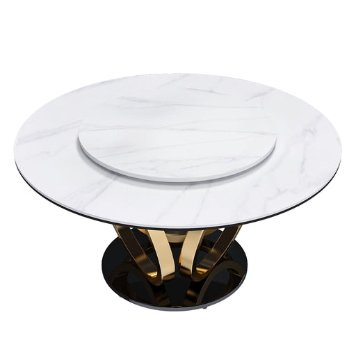 View full details53" Round Marble Dining Table With Lazy Susan, Dining Room, Dinette (Table Only) - Gold / Gold / White