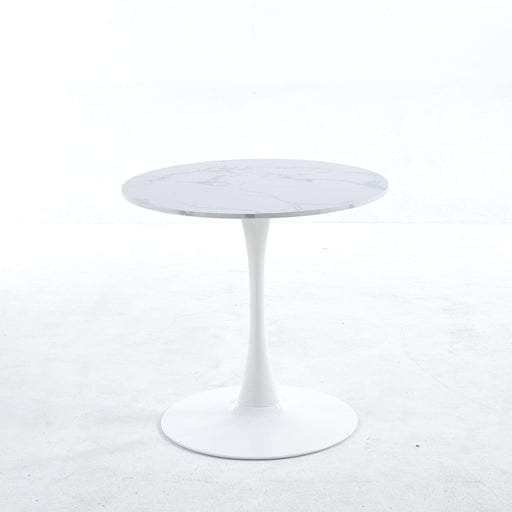Elegant Design: The table's modern round design enhances any dining area with its sleek white artificial stone top. Durable Surface: Made from sin...