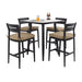 5 Pieces Outdoor Patio Bar Set, Rounded Square Table & 4 Bar Stools - Ember Black / Linen Sesame