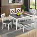 Modern 6 Piece Dining Table Set With Bench And Chairs For Dining Room Or Kitchen - Gray / White