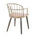 - Industrial Style: The Riley Arm Chair by LumiSource combines industrial style with farmhouse aesthetics, featuring a unique blend of white washed seat, brown legs, and antique copper back and armrests. Its design is an updated take on the traditional spindle-back chair, offering a stylish addition to any dining room.