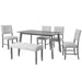 Rustic Farmhouse Dining Room Rectangular Table With 4 Upholstered Chairs And Bench