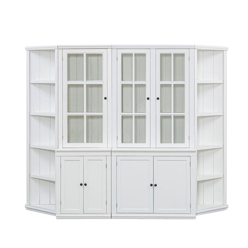 View full detailsRetro Style Wall Suit With Glass Doors, 75.25" Tall Display Cabinets & Triangle Sided Bookshelves - White
