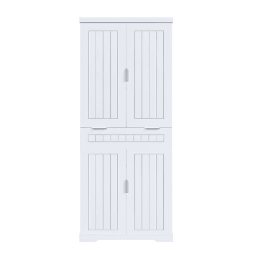 View full detailsFarmhouse Style Pantry Cabinet With Drawer 2 Cabinets & 6 Door Shelves Adjustable Shelves Freestanding Cupboard - White