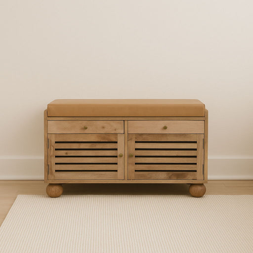 Buffalo Hide Pull out Shoe Storage Bench - Experience the epitome of space-saving functionality with our solid mango wood shoe storage cabinet. Wi...
