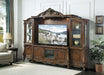 - Elegant Design: The Latisha Antique Oak Finish Entertainment Center features a stunning floral trim and includes touch lighting, enhancing its sophisticated aesthetic. This piece is crafted to complement any living room setup with its elegant design elements.