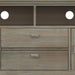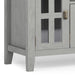 - Features a large centrally located open area with one (1) flip down drawer, one (1) pull out drawer as well as four (4) storage spaces with tempered glass doors.