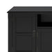 - Features two (2) centrally located open areas with two drawers as well as two (2) framed doors with enclosed spaces; the two (2) large side storage cabinets open to one adjustable shelf each.