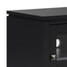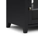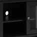 • Features two (2) sliding tempered glass doors that open to a cabinet with two (2) adjustable shelves