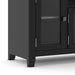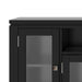 - Features a large centrally located open area with one (1) flip down drawer, one (1) pull out drawer as well as four (4) storage spaces with tempered glass doors