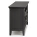 • Features a large centrally located open area with two (2) drawers as well as two (2) framed doors with enclosed spaces; the two (2) large side storage cabinets open to one (1) adjustable shelf each.