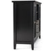 - Features two (2) central drawers with metal glides, open center area with adjustable shelf and two (2) side tempered glass framed doors that open to large storage spaces with two (2) shelves each