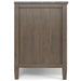 - Transitional design includes shaker style doors featuring X detail in panel, bronze pulls and square tapered legs