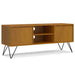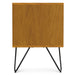 - Features two (2) side cabinets with two (2) adjustable shelves and soft closing hinges with open central space with one (1) shelf and four (4) black iron hairpin legs