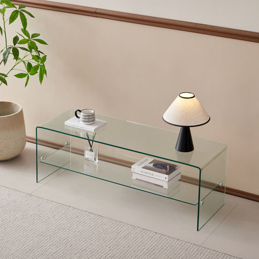 View full detailsModern Tempered Glass TV Stand With Shelf And Open Back Design - Clear