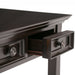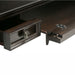 • Features two side drawers with metal drawer glides and flip down pull-out keyboard tray
