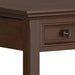 - Transitional design includes panel framed drawer fronts, and round decorative knobs with a Bronze finish