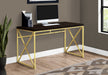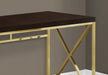 - Sturdy Construction: The desk features a thick panel tabletop that offers a rich wood look, supported by a contemporary X-design gold metal base, ensuring durability and stability.