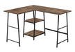 - Reclaimed Wood Look: Medium brown laminate finish with a smooth texture on the corner desktop and shelves.