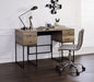 - Contemporary Metal Base: The desk's open metal sled base in a bold black finish adds a contemporary touch, balancing industrial and rustic aesthetics perfectly.