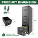 Premium 4 Drawer File Cabinet With Lock Metal Vertical Design For Office And Home, A4 Legal / Letter Size, Steel Construction - Gunmetal Black