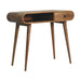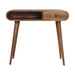 - Curved Chestnut Writing Desk - Introducing our stylish Writing Desk, crafted from solid mango wood. It's sustainably sourced and comes in a beautiful chestnut finish. With one open slot and one drawer, it helps keep your space tidy. One shiny brass knob and and four Nordic-style legs add a touch of elegance. Perfect for work or study, this desk is a functional and attractive addition to your home or office.