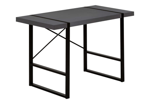 Industrial Design: This computer desk features a thick-panel desktop with a modern grey finish and robust black metal legs, offering an eye-c...