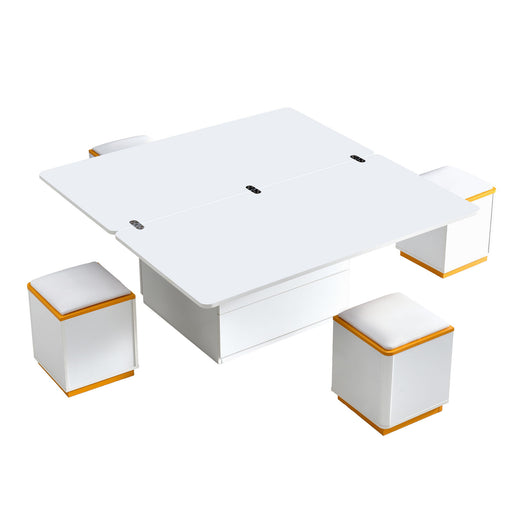 Multi Functional Adjustable Coffee Table With 4 Storage Stools
