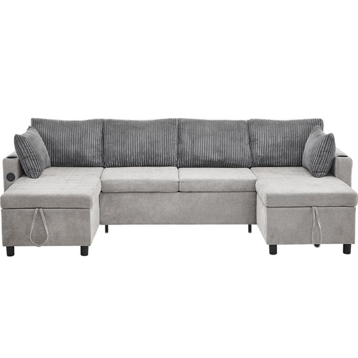 Sectional Sofa Bed With Pull Out Sleeper, USB Ports, Cup Holders